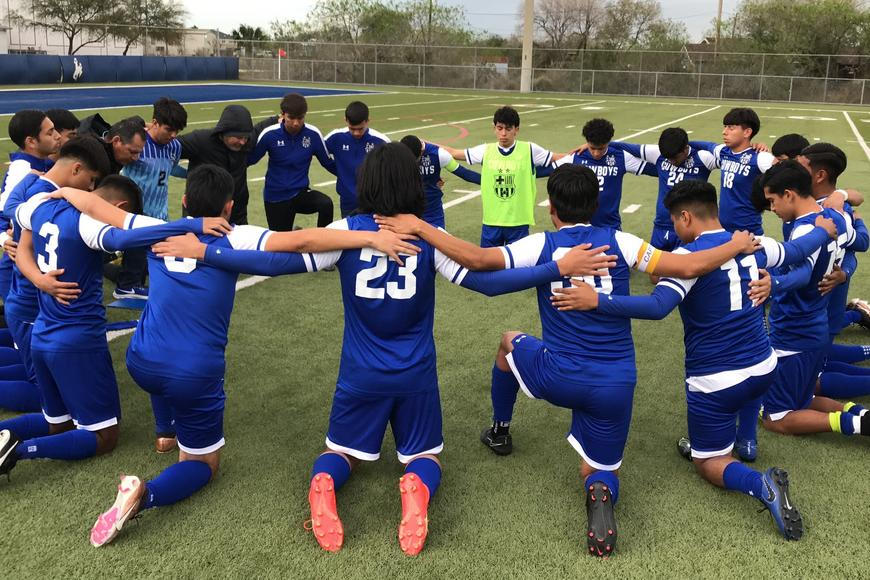 „Žádáme o klid, o odpuštění, o boží ochranu – pro hráče před zraněními, pro fanoušky, aby se pak bezpečně dostali domů. A dnes taky pro naše dva bývalé hráče, kteří měli autonehodu a teď bojují o život,“ vysvětluje mi José Espitia, učitel španělštiny a fotbalový kouč na střední škole ve dvousettisícovém příhraničním městě v nejjižnějším cípu Texasu. Nedaleko odsud jsou pláže Mexického zálivu nebo základna SpaceX a téměř na dohled od školního areálu stojí mezinárodní mosty přes řeku Rio Grande, která tu odděluje Spojené státy americké a Mexiko.
