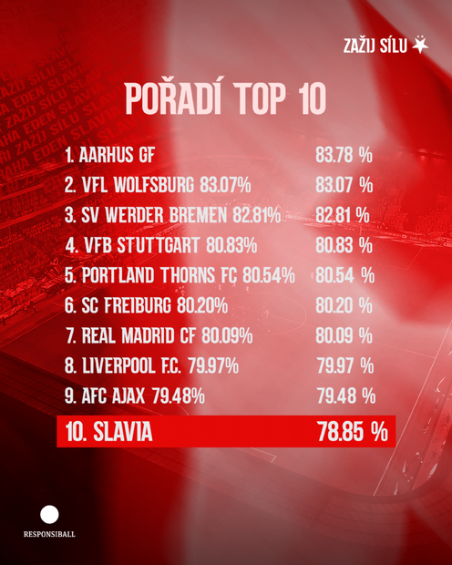 Do letošního ročníku prestižní mezinárodní ankety Responsiball se přihlásilo 406 klubů z ligových soutěží z celého světa, včetně top 5 lig z Německa, Anglie, Španělska, Francie a Itálie. Pražská Slavia zaznamenala historický úspěch a ukázala, že zvláště pražská S jsou v Česku v otázkách společenské odpovědnosti klubů hodně aktivní.