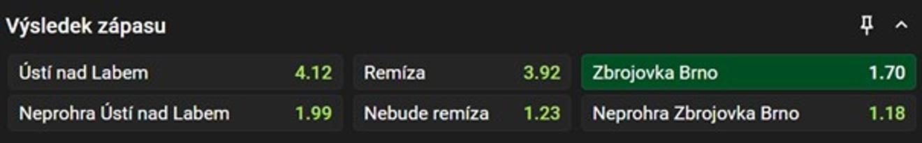Zbrojovka jede ve 12. kole Chance Národní Ligy do Ústí jako favorit. Na její výhru je vypsaný kurz 1,70. Bookmakeři tak k vítězství Brňanů přiřadili pravděpodobnost 58,82 %.