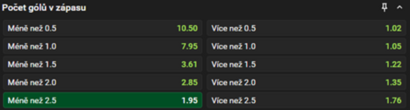 TIP: méně než 2,5 gólu – Vsadit u Chance