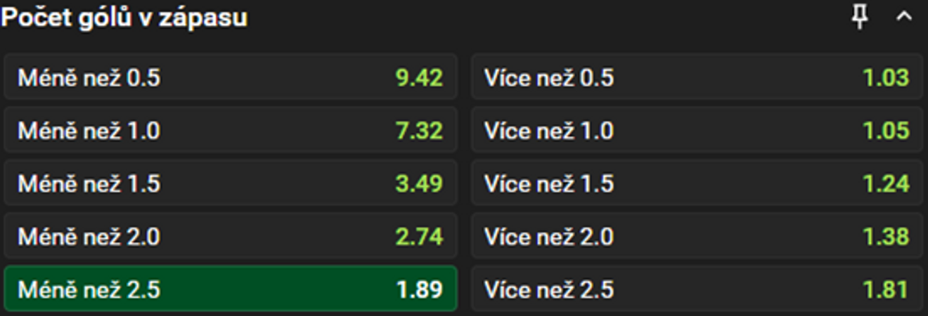 TIP: Méně než 2,5 gólu – Vsadit u Chance