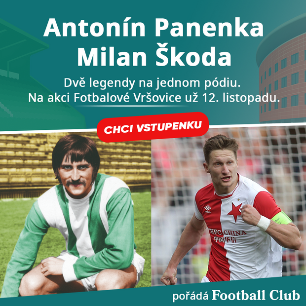 Antonín Panenka bude jedním z hostů na společenské akci Fotbalové Vršovice, která se koná už teď ve středu ve vršovickém kulturním centru Vzlet. Přijďte si poslechnout ředitele Slavie a Bohemians, Martina Říhu a Darka Jakubowicze, architekta Adama Gebriana, legendy obou klubů Antonína Panenku a Milana Škodu a také bývalé ligové fotbalisty Jakuba Podaného a Zdeňka Folprechta.