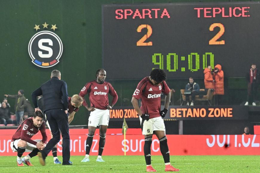 Ve druhém poločase už Sparta zápas ovládla (12:1 na střely), ale v momentě, kdy její tlak sílil, paradoxně nepohlídala v 64. minutě brejk Teplic a Matěj Radosta krásnou trefou poslal Teplice do vedení.