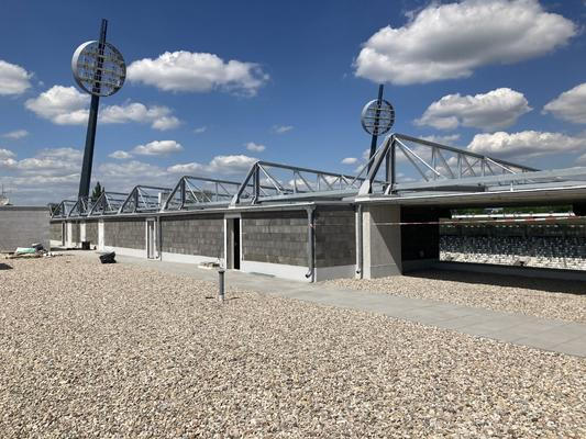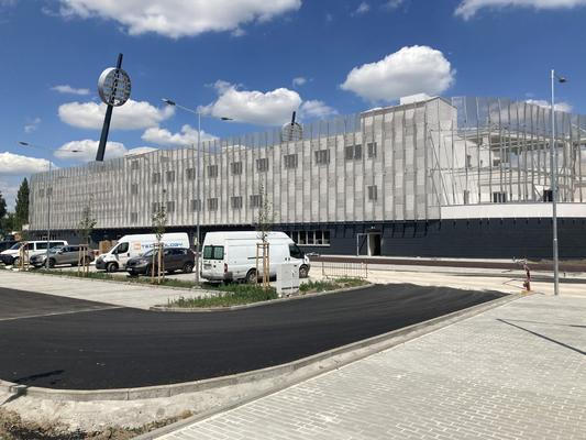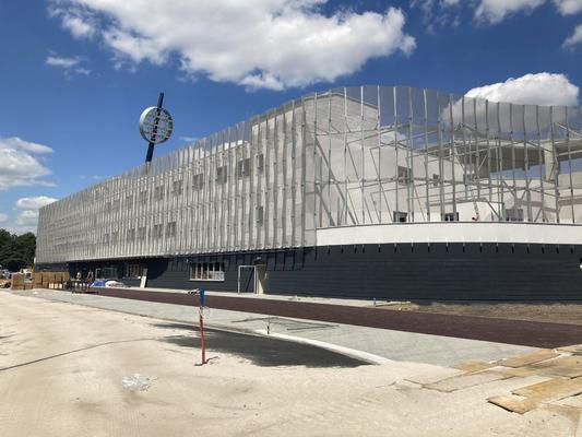 Desky z tahokovu dle stavbařů umožní proudění vzduchu i protihlukovou ochranu. „Jedním z důležitých parametrů pro výběr zvoleného typu opláštění bylo zajištění denního osvětlení v kancelářích klubu,“ ujasnil technický vedoucí stavby Daniel Novotný.