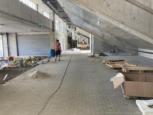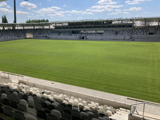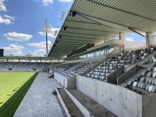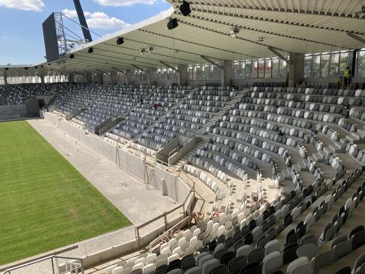 Namontovány jsou například už kompletně všechny sedačky a daří se i trávníku, který v nové aréně už vyrostl. Pokračují práce v interiéru nebo na sektoru hostí. „Oplocení kolem sektoru hostů tam prostě musí být, ať se líbí, nebo ne. Uděláme tam tedy koridor pro příznivce hostujícího celku,“ uvedl na začátku července pro klubový web Daniel Novotný, manažer stavby hradecké arény z firmy Strabag.