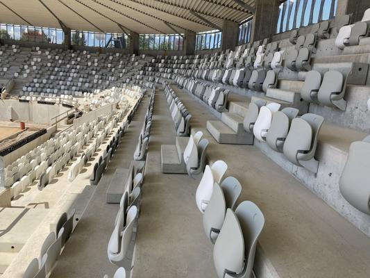 Nejvýraznější změnou v hledišti jsou přibývající sedačky. „Počítáme, že s nimi budeme hotoví někdy v polovině června. Na východní a západní tribuně jsme nahrubo namontovali světla. Po zasetí trávníku a dokončení hrací plochy se budou ustavovat do pozic, bude se měřit a nastavovat intenzita světla,“ Daniel Novotný, manažer stavby hradecké arény ze společnosti Strabag.