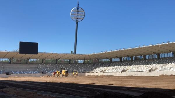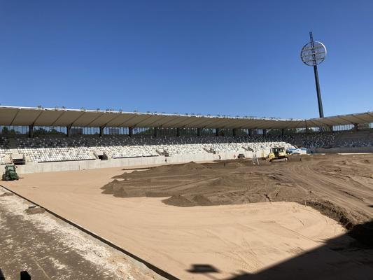 „Na hrací plochu se aktuálně naváží zemina, trávník by se měl zasít na konci tohoto týdne, nejpozději v pondělí či úterý toho dalšího. Aktuálně to směřujeme na sobotu, ale ještě se to může posunout,“ dodává další detaily Novotný.