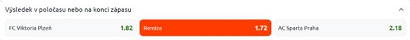 Bookmakeři v neděli více věří domácím. Na výhru Plzně vypsali kurz 2,25. Vítězství hostující Sparty u sebe má kurz 2,90. Pokud si myslíte, že se v utkání těchto dvou týmů poprvé v sezoně zrodí remíza, můžete si na vsadit v kurzu 3,60.