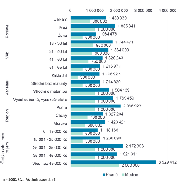 Češi si myslí, že by jim na důchod mělo stačit našetřených 1,5 milionu korun. Rozdíl mezi představami mužů a žen je ale poměrně velký – muži by v průměru potřebovali 1,8 milionu, ženám by stačil 1 milion korun. Vyplývá to alespoň z rozsáhlého průzkumu společnosti Partners, který pro ni ke Dni finanční gramotnosti 8. září připravila výzkumná agentura MindBridge Consulting. Reprezentativní výzkum v srpnu 2023 mapoval názory populace ve věku 18–65 let.