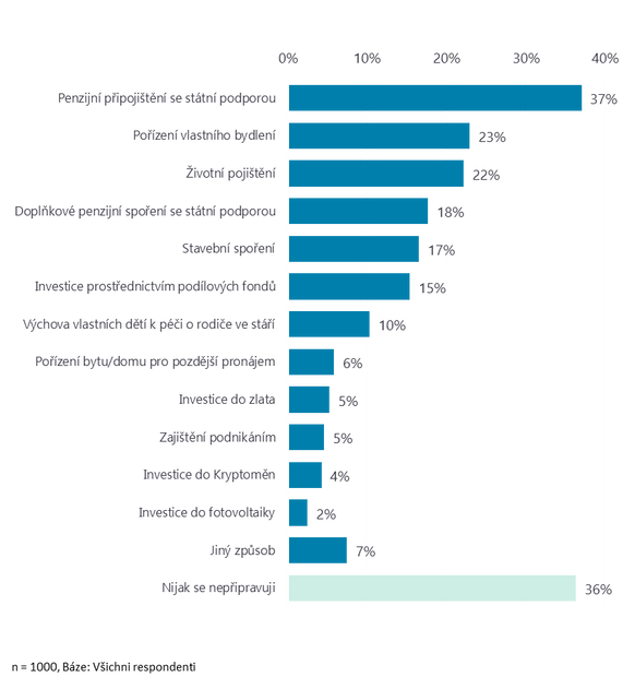 Otázka je, kam posílají své peníze vydělávat. Ukázalo se, že nejvíce lidí (37 %) fandí starému penzijku – penzijnímu připojištění, které ale v současné době s minimálními výnosy není ideálním produktem na rozdíl od vhodně nastaveného novějšího penzijního spoření. O změně ze starého na nové „penzijko“ by ale uvažovala asi jen pětina současných uživatelů.