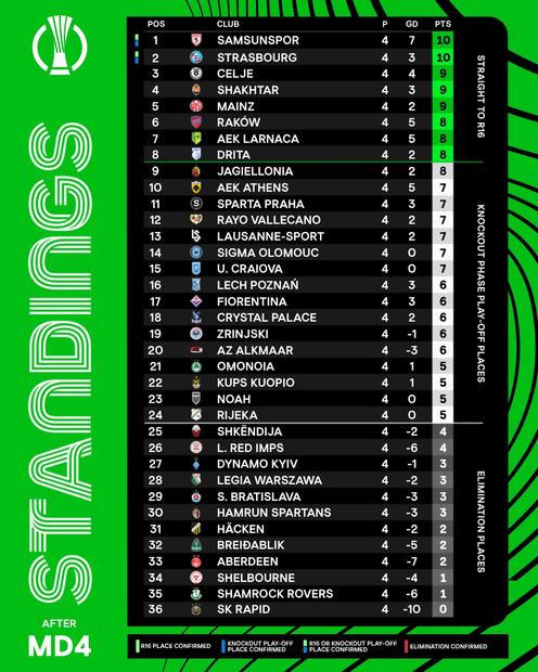 Minulou sezonu v ligové fázi Konferenční ligy bylo třeba k postupu do play off 7 bodů, do první osmičky a tedy rovnou do osmifinále šly týmy s aspoň 11 body.