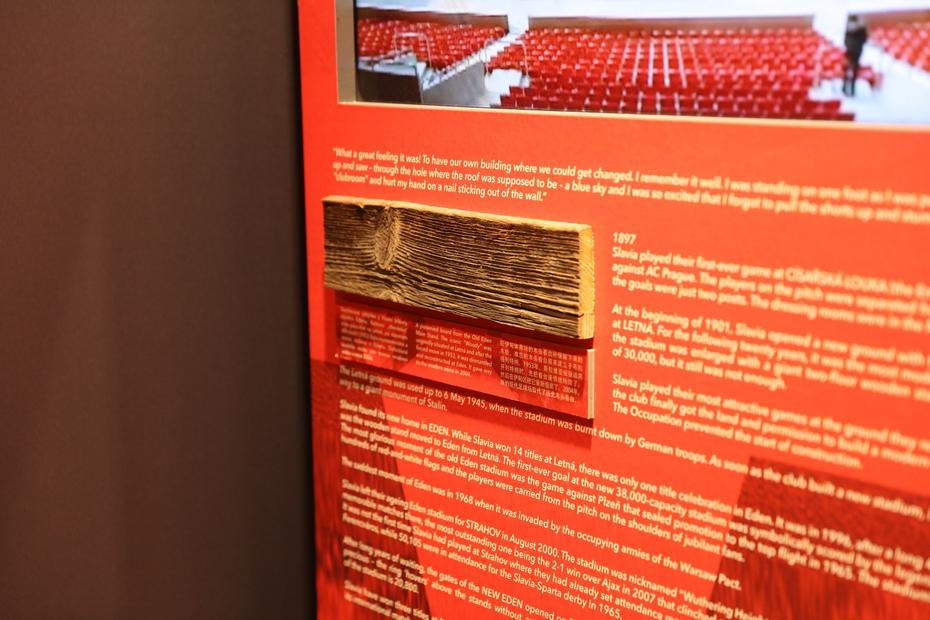 Těžko si dnes představit, že Eden byl mezi slávistickými příznivci před 70 lety oblíben asi jako prázdné výlohy nedalekých obchodů, kam zatím nezavítal slíbený socialistický blahobyt. Nepřekvapí, že ze starého domova putovalo do Edenu také ikonické dřevo dnes vystavené v klubové expozici. Jako by ten do panelu zasazený kus s hrubou kresbou a sukem promlouval k divákovi řečí tradice. Dodnes je upomínkou původu a i když nemluví, tak jeho poselství o letenském DNA klubu je víc než výmluvné.