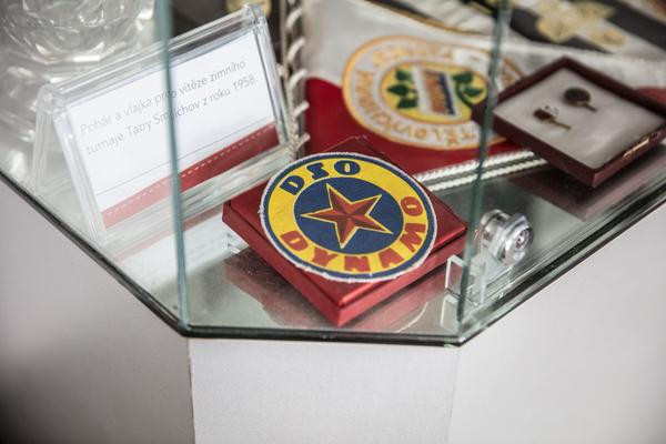 Projdete galerií dresů do prvního patra slávistického muzea, odkud se můžete pokochat pohledem na travnatou plochu hřiště. Pak se váš pohled stočí na četné trofeje mládežnických celků Slavie, jejího ženského týmu či individuálních ocenění hráčů, které dominují výstavnímu prostoru. V jedné z vitrín se krčí poměrně nevýrazný artefakt. Jedná se o našívací kulatý emblém v červenožlutomodrých barvách, kterému dominuje kremelská hvězda. Kolem ní se obtáčí nápis DSO Dynamo.