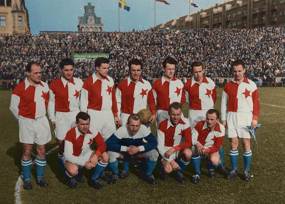 Neznalí návštěvníci by pravděpodobně hádali, že se jedná o upomínku na některého ze slávistických soupeřů. Zasvěcení by se okamžitě dovtípili, že nášivka odkazuje k jednomu z dobových názvů Slavie v padesátých letech. Tehdy klub zažívá možná nejtěžší období své existence a než se v druhé polovině šedesátých let pod staronovým názvem nadechne k novému vzestupu, projde si doslova očistcem komunistického sportovního realismu. Ale nepředbíhejme.