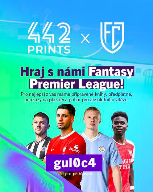 I my v redakci už poctivě ladíme sestavy a pro letošní sezonu jsme navíc spojili síly s e-shopem 442prints.cz. Budeme partnerem jejich FPL miniligy, do které se můžete přidat úplně zdarma i vy buď pomocí odkazu https://fantasy.premierleague.com/leagues/auto-join/gul0c4 nebo speciálního kódu gul0c4.