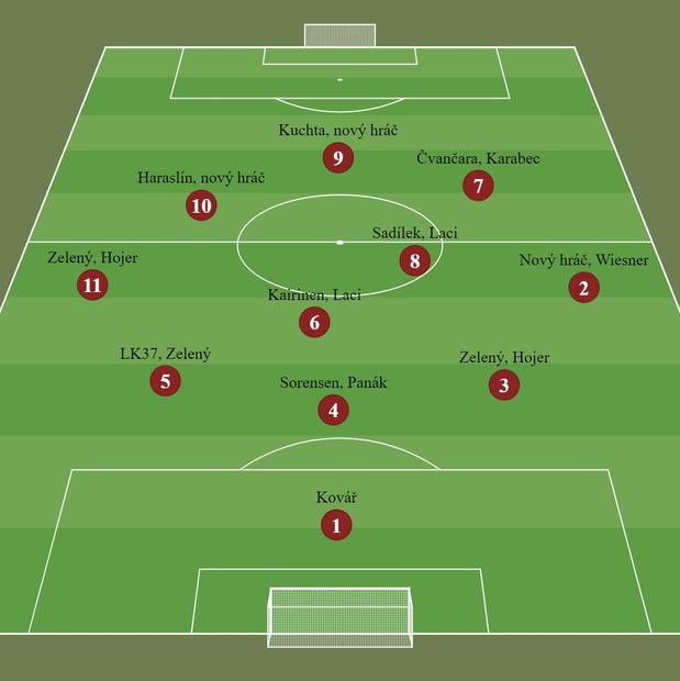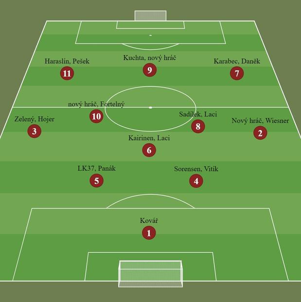 Předpokládám, že Sparta bude na podzim hrát zejména 3-4-3 a 4-3-3. Obě tato rozestavení přinášejí jiné systematické prvky, pro obě zároveň má tým základy a potřebuje v nich zejména zaplnit a zkvalitnit některá místa, zkrátka kádr rozšířit a přinést víc variant.