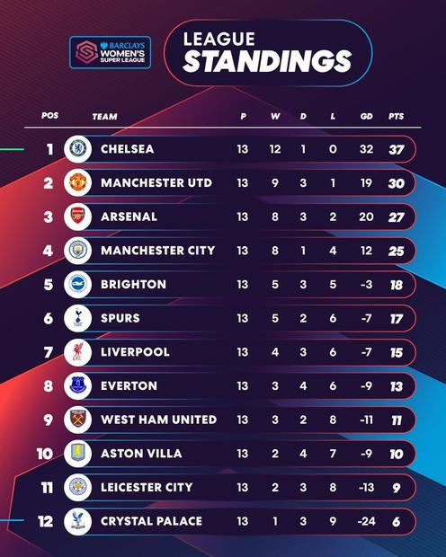 Chelsea má sezonu dobře rozehranou, když po 13 kolech z celkových 22 vede anglickou ligu o 7 bodů před druhým Manchesterem United a o další 3 body zpět je třetí Arsenal. V Lize mistryň jsou hráčky Blues už ve čtvrtfinále, které bude rozlosováno tento pátek.