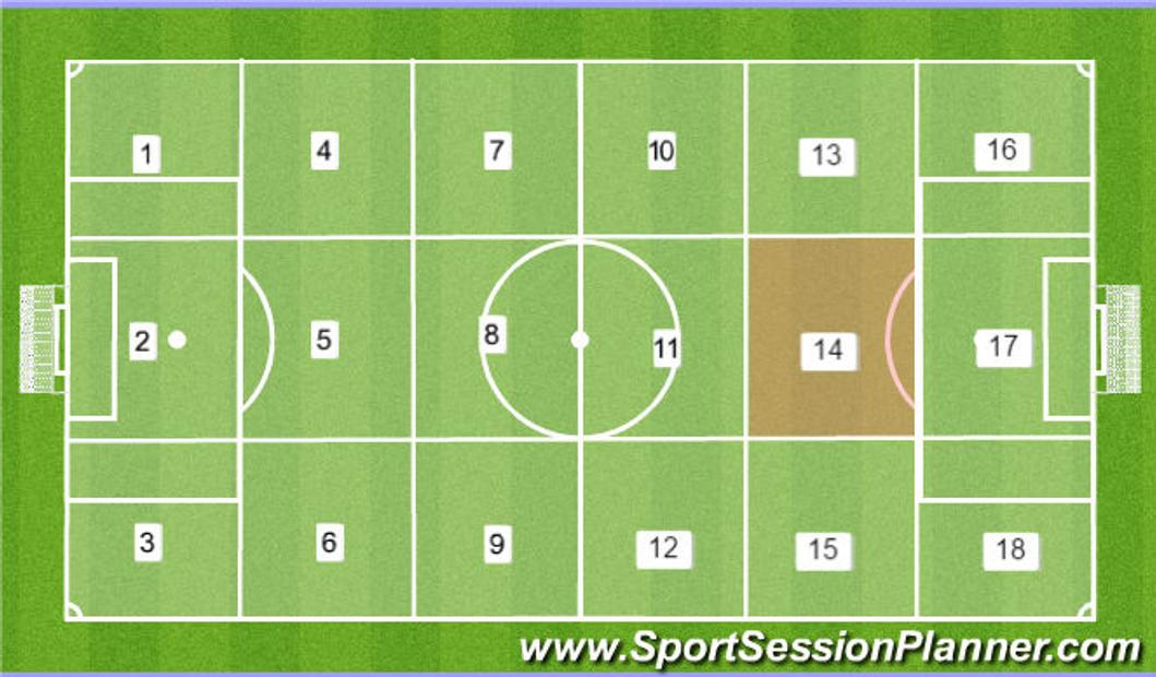 Zóna 14 je ve fotbale nejčastěji využívána jako součást jiného způsobu dělení hřiště - na 18 zón (obrázek níže). Využívá se mimo jiné proto, že obsahuje velice nebezpečnou oblast, kterou je nutné co nejlépe bránit.