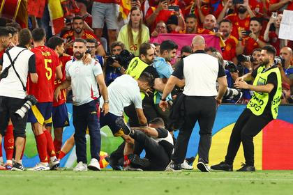 Přišel španělský kapitán Álvaro Marata o finále Eura? Fanoušci Španělska jsou v šoku. Útočníka při oslavách po zápase omylem zranil pořadatel, který se nešikovně snažil zpacifikovat fanouška na hrací ploše.