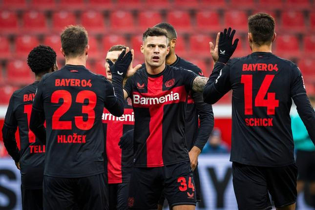 Výbuch radosti a pak pořádné zatrnutí. Záložník Bayeru Leverkusen Granit Xhaka si po parádní gólové střele vystřelil i ze všech na stadionu včetně trenéra Alonsa a lékařského týmu.
