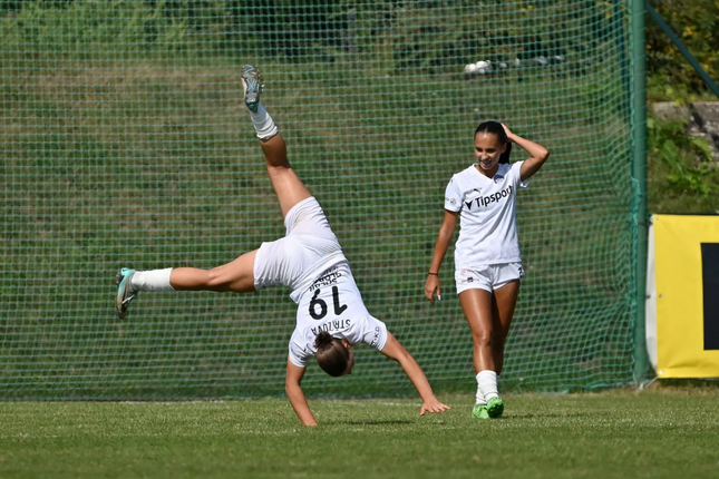 Sedmnáctiletá fotbalistka Matilda Sluková si řekla o velkou pozornost díky čtyřem gólům v zápase ženské Fortuna ligy. Diváky navíc potěšila i její akrobatická oslava.