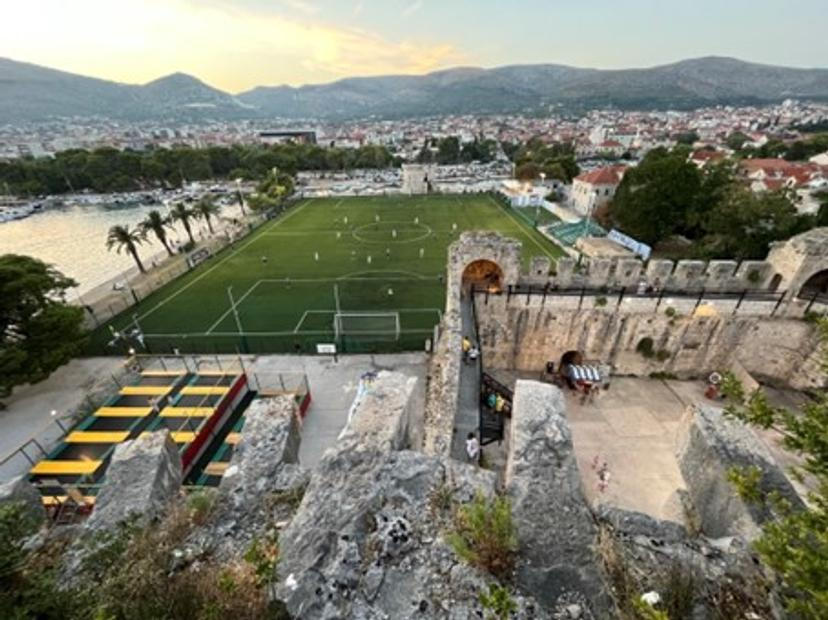 Na utkání jsme přišli o něco později v době, kdy už domácí Trogir vedl 1:0. Zaplatili jsme 2,50 eura za vstup na pevnost Kamerlengo, vystoupali na její nejvyšší věž a užívali si krásný výhled.