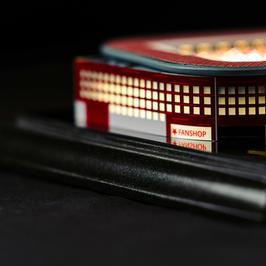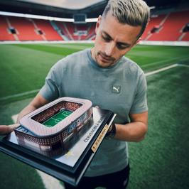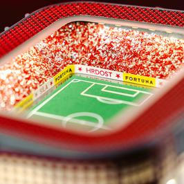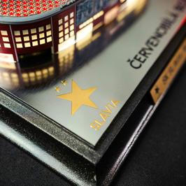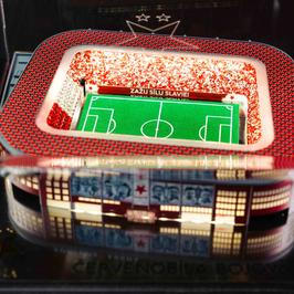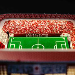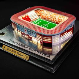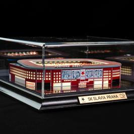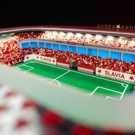Zatím jsme vyrobili dvě limitované edice Fortuna Areny. První v počtu sto kusů, jde o model standard, který je cenově nejdostupnější. Ale díky tomu, jak jsme už s vývojem daleko, jde opravdu o luxusní kousek. Choreo na tribunách je vytvořené z krystalů Swarovski, stadion má krásný dřevěný podstavec se štítkem klubu a taky metalickou střechu s motivem červené hvězdy, certifikát obsahuje kus hraného dresu Tomáše Holeše. Myslím, že z toho budou všichni nadšení.