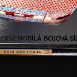 Druhá edice je pak omezená na padesát kusů. Je to premium model, který v sobě má zabudovaný multimediální podstavec se čtyřmi světelnými a zvukovými efekty včetně goal songu. U toho musí mít každý, kdo fandí Slavii, husí kůži, protože si přijde jako na stadionu. Základová deska je z broušeného skla se zlatým logem klubu. A certifikát v tomto případě obsahuje kus hraného dresu Lukáše Provoda. Teď už nám zbývá z téhle edice jen dvanáct kusů.