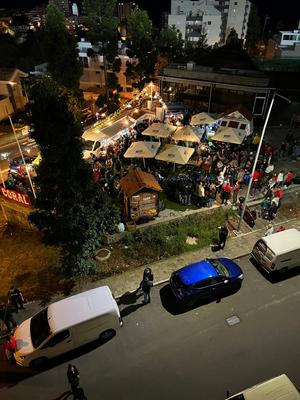 Třetinku nealko piva za 1,50 eura odlije obsluha ze skla do plastu. Nic moc. Lepší je výhled na úpatí osvíceného Funchalu. Přes ulici od stadionu sledujeme přeplněnou zahrádku s fanoušky, na které svítí nápis Coral ze všech stran. Tenhle pivovar má na ostrově v podstatě monopol, najdete ho na každém kroku. Radost nám dělá, že svůj produkt vyrábí z českého chmele a sladu. I proto se možná dá pít.