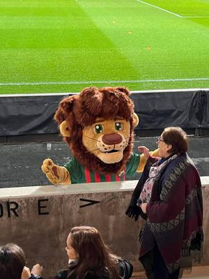 Přesouváme se hledat naše místo a na chvíli je po idylce. Naše místa jsou obsazena. Starší pán se nám snaží pomoci, ale v jeho rodném jazyce nám zkrátka moc nepomohl. Ztrácím nervy a všímám si maskota domácího klubu mezi fanoušky. Jdu se tedy alespoň vyfotit.
