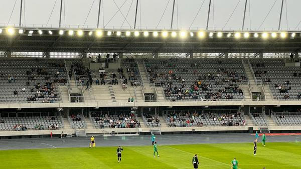 Lístky za branky koupit nešly. Nejspíš kvůli tomu, že stadion pro 15 tisíc lidí bývá poloprázdný, a tak jdou do prodeje jen vstupenky na hlavní tribuny. Za brankou byl vždy obsazen jen jeden sektor v rohu, kde byly skromné kotle obou soupeřů.