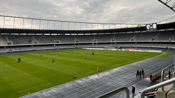 Přibližně 40 minut do začátku zápasu usedáme na místa. Diváků v ochozech je méně než hráčů na trávníku, tak jdeme prozkoumat občerstvení. Nacházíme jediný stánek, ve kterém pohotový mladík pochopí, co chceme, začíná čepovat dvě piva a přináší nachos s dipem. Tedy jediný pokrm v místní nabídce. Platíme 14 eur. Kartou, jinak to nejde.