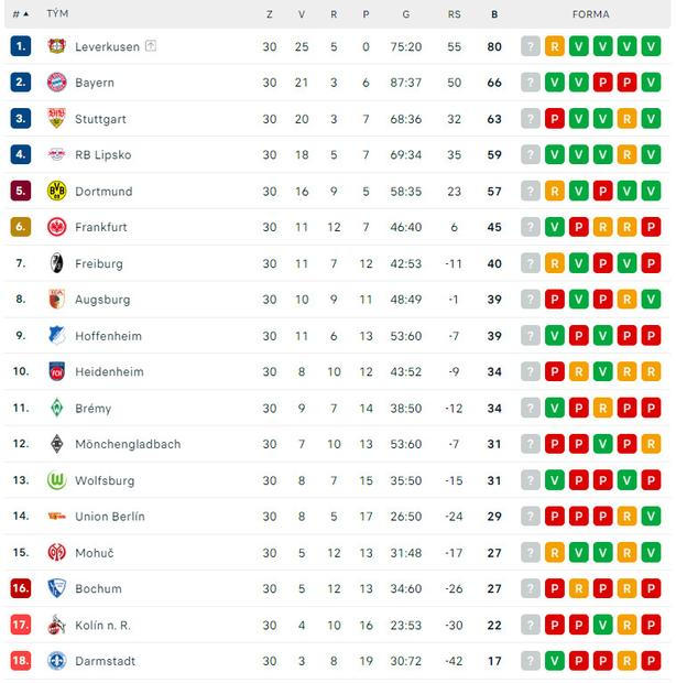 Svoji evropskou kvalifikaci si pohlídal i Frankfurt. Zálusk na jeho šesté místo si mohl dělat Augsburg. Die Adler svým bavorským soupeřům ale podobné myšlenky zatrhli domácí výhrou 3:1. První šestka se tím pádem zdá být zapečetěna. Zbytek pelotonu vede Freiburg. S Mainzem uhráli jen remízu 1:1, i tak má ale Christian Streich nakročeno ke třetí kvalifikaci do Evropy v pořadí. V cestě stojí zbývající soupeři Wolfsburg, Kolín, Heidenheim a berlínský Union. To je hratelný los. Přímé konkurenty o umístění v tabulce čeká složitější práce. Augsburg ještě pořád vyhlíží duely s Dortmundem a Leverkusenem, do Hoffenheimu přijedou Lipsko a Bayern.