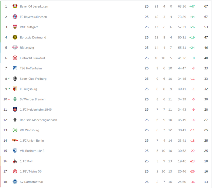 Celé jedno bundesligové kolo bez velkého překvapení? To nám po delším době nadělil německý fotbal. V minulých týdnech jsme sledovali remízu Bayernu s Freiburgem, Stuttgartu s Kolínem nebo Bochum, která Bavorům sebrala všechny tři body. Dvacáté páté kolo jako by hlásilo návrat k normálu.