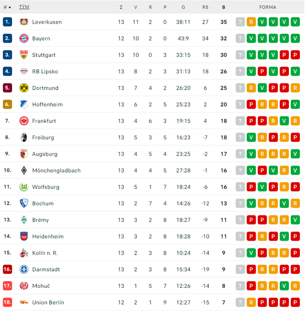 Leverkusenu tak skončila 14zápasová série výher (napříč soutěžemi) a ve 13. kole si připsal teprve druhou ztrátu bodů. K té první došlo v Mnichově na Bayernu už ve 4. kole (2:2).