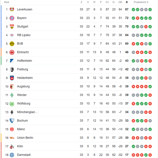 Leverkusen a jejich historické tažení si určitě ukradnou většinu pozornosti. Především český fanoušek by ale mohl alespoň po očku sledovat i Hoffenheim. Pavel Kadeřábek a jeho spoluhráči naposledy přejeli beznadějně poslední Darmstadt 6:0, v posledním kole se utkají s Bayernem a v sázce není nic menšího než Liga mistrů.