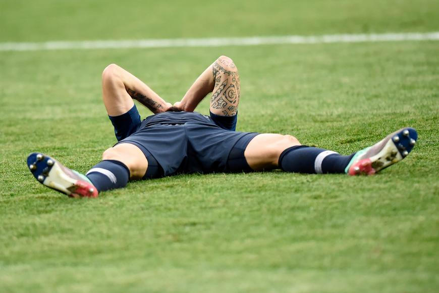 Sledoval míč a šel si pro něj ve vzduchu kopačkou napřed. Do souboje ale vyskočil i argentinský obránce Lyonu Nicolas Tagliafico.