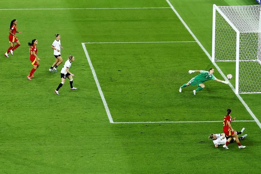 Z velkého úhlu nachytala německou brankářku a hrdinku čtvrtfinálové bitvy s Francií Ann-Katrin Bergerovou. Věděla přitom, co dělá.