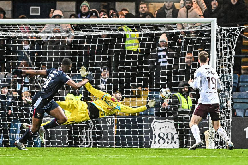 43letý brankář vytáhl jasný gól domácích Dundee FC v závěrečném nastavení a zachránil tak týmu z hlavního skotského města důležité vítězství 1:0.
